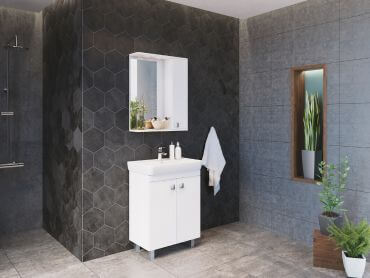 AR Simply stojeća baza sa umivaonikom + ogledalo i ormarić, bijela sjaj