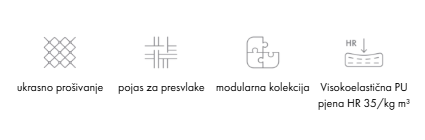 - Funkcionalnost: garnitura je opremljena mehanizmom Dolphin, koji omogućava jednostavno pretvaranje u ležaj. Osim toga, uključuje ladicu za posteljinu, što omogućava dodatno skladištenje i održava vaš prostor urednim.