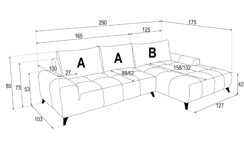 Damski ležaj SALOUNA dim.295×175 cm, desni kut (Artico_Anthracite)