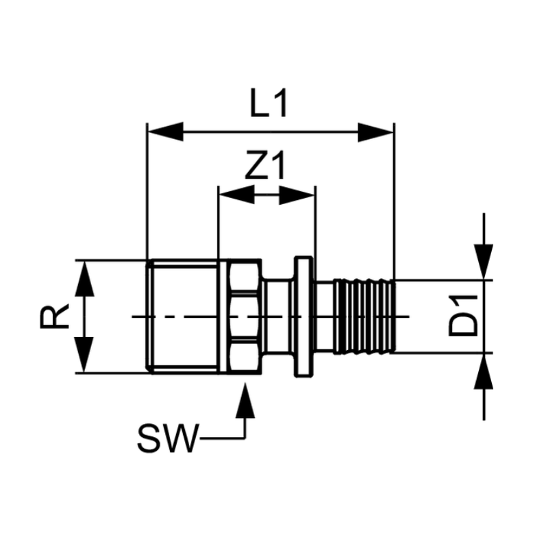 TECEflex prijelazna spojnica, vanjski navoj, standardni mjed, 16×1/2″
