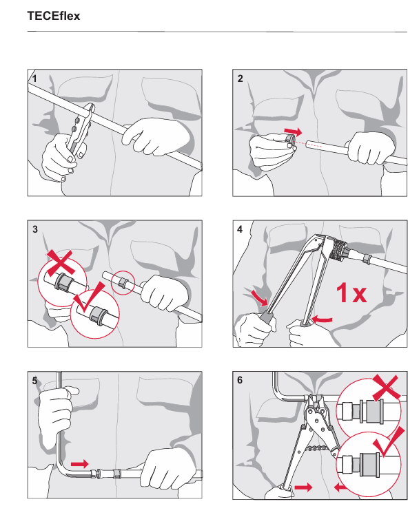 Višeslojna spojna cijev u skladu s EN ISO 21003 za instalaciju pitke vode i instalaciju grijanja, predizolirana PE izolacijom debljine 6 mm (λR = 0,04 W/mK) i nepoderivom PE folijom (boja: crvena). Može se upotrebljavati u skladu s DIN 1988-200 (tablica 8, br. 4/5 i tablica 9, br. 6). Normalno zapaljivo u skladu s EN 13501 klasa E; 100 % bez HCFC-a i CFC-a.