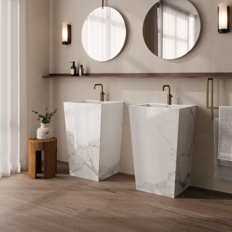 TR Pedestal Tonia Calacatta, samostojeći keramički umivaonik, 58x48x90cm